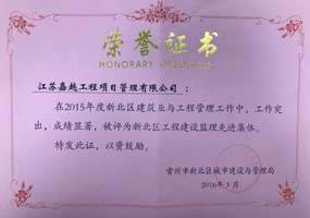 江蘇嘉越工程項目管理有限公司成立于1997年,擁有房屋建筑工程監(jiān)理甲級資質,市政公用工程監(jiān)理甲級資質。擁有GB/T19001-ISO9001質量管理體系認證證書。是江蘇省項目管理、全過程工程咨詢試點企業,是江蘇省“優(yōu)秀監(jiān)理企業”、“先進監(jiān)理企業”。是江蘇建設招投標與監(jiān)理協會常務理事單位,常州市建設監(jiān)理協會會長單位。